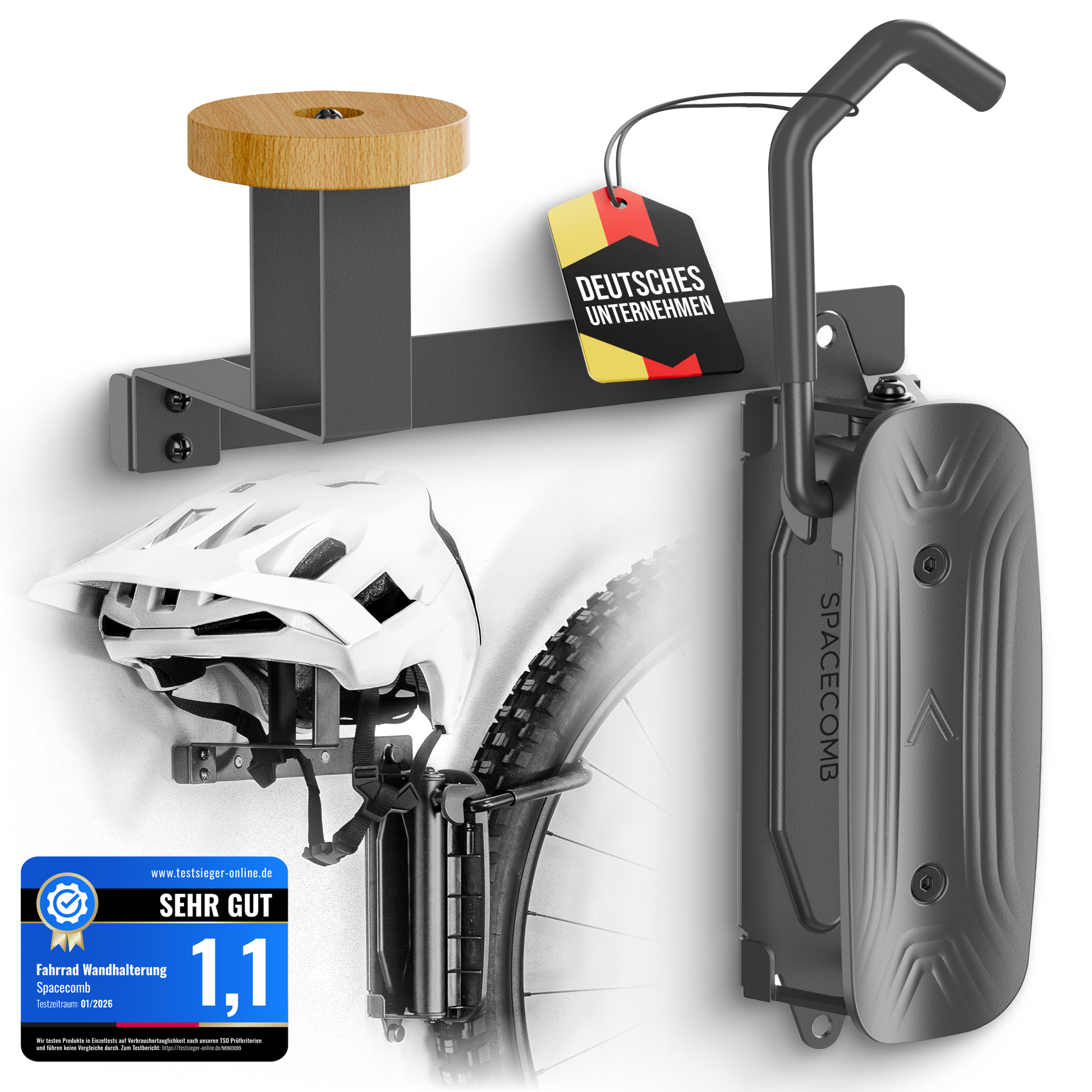 Schwenkbare Fahrradhalterung mit Helmhalter